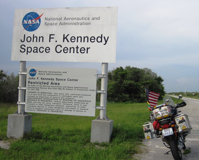 We dutifully got all our stuff together and made our way back to the car-park, where I changed back into my riding gear and rode back to the mainland. I looked over to the Kennedy Space Centre where so many space shuttles had been launched from. I wished that I could have seen one blast off into the stratosphere, but since the Space Shuttle program has been mothballed, that was not something I was ever likely to see…