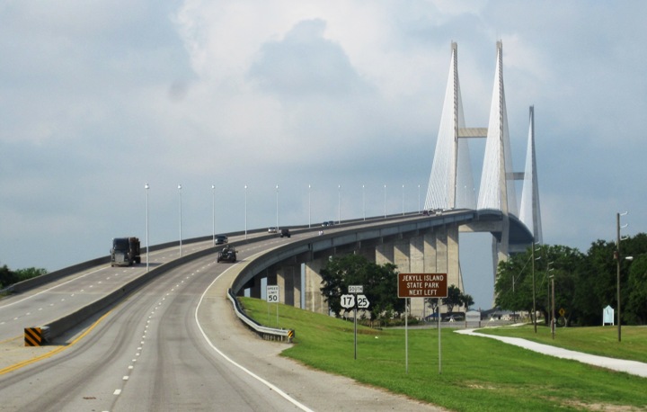 I cruised past Jacksonville, crossing the St John’s River, the longest river in Florida, and one of the few rivers in the USA that flows north,