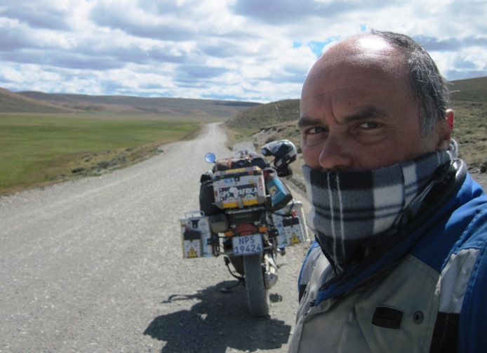 After the Argentine formalities were over, I rode out onto the gravel, and made the mistake of taking up my usual off-road position on the bike, namely standing up on the pegs… Within a 100 metres I had to sit my backside down again, as the wind gleefully pushed our now much bigger target, all over the dirt road… Trying to stay in the tracks of previous vehicles while standing up, was impossible…!!