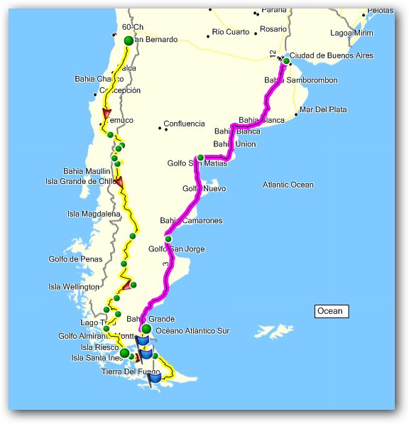 I left Ushuaia early this morning, and started out on the long road to the town of Dead Horse, Prudoe Bay, Alaska….!! The route that I had planned would cover almost 40 000 km and would hopefully see me up there towards the end of July…