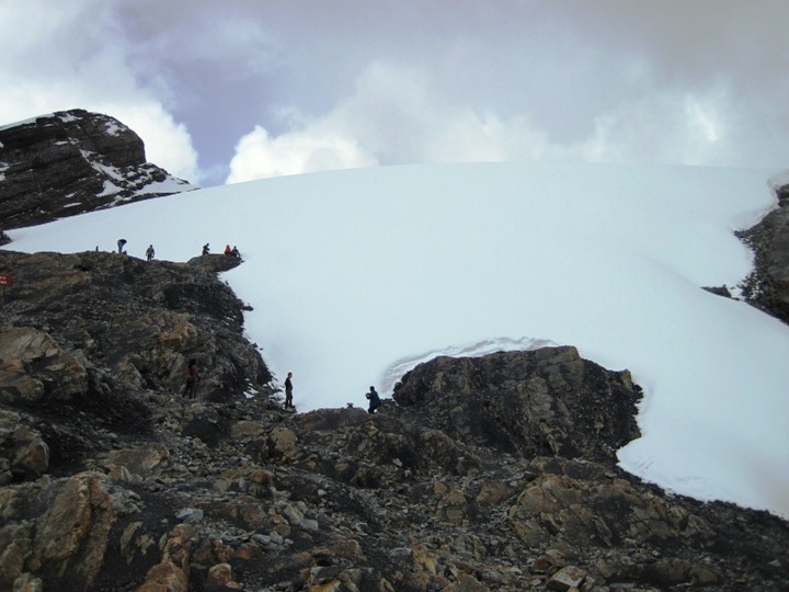 The walk up to the glacier was tough…. The path climbed up from the parking area to a halfway point at 5 000 m, where we stopped to take a break… The people that had decided to walk up to the glacier, were strung out in a long line behind a young German guy and a fit and healthy young woman who walked with us…