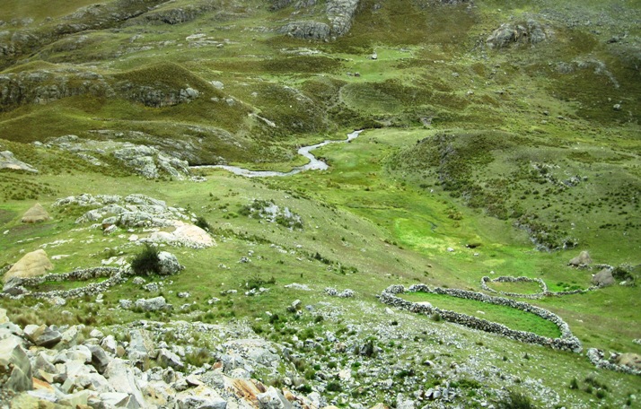 More evidence that people actually inhabit this area, which was close to 5 000 metres above sea level... The stone corrals or kralls as we call them back home, are to safeguard the sheep and Alpacas during the night... Spectacled Bears roam these mountains and will take the odd lamb and even a full grown sheep, should mutton take it's fancy...!! They have been known to attack Llamas and horses as well, although they tend to be more herbivorous than most other bears.... The males can grow to weigh over 200 kg, so not an animal to challenge to a bout of wrestling...!!