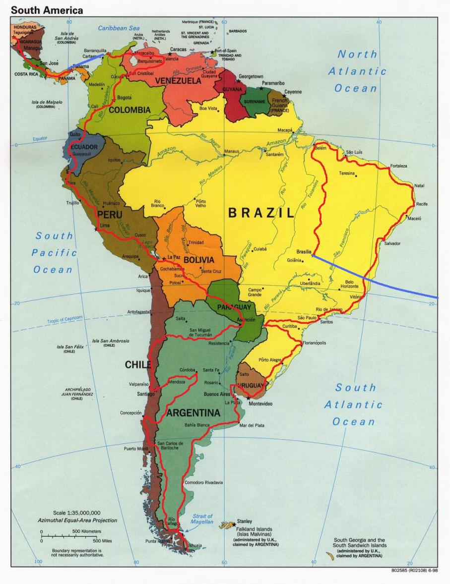 The World Map I originally posted did not show enough detail for people who have been interested to see where I plan to go, so I have deleted it and will be replacing it with maps of each continent, which will hopefully give you all a clearer picture of my intended route…