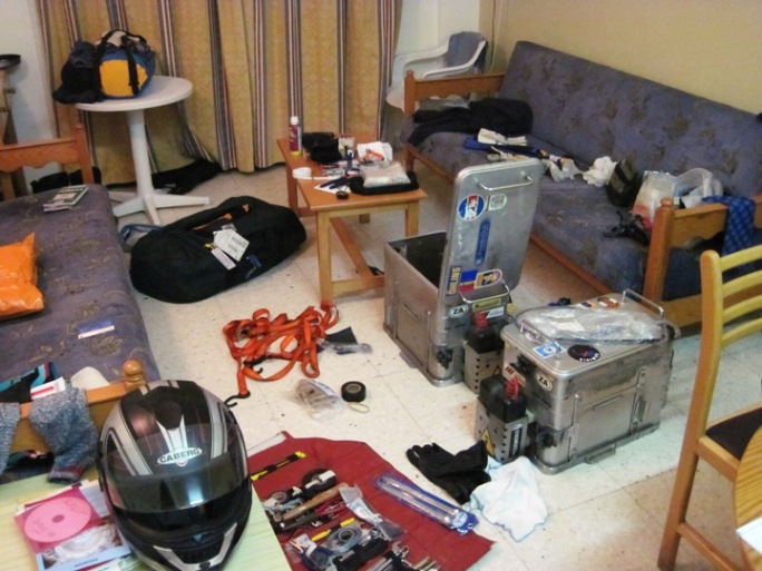 I will need to have the Big Fella crated, and am lucky enough to have Arno’s advice to work with, as he has just flown his bike from Amman to Kathmandu in Nepal… We have identical bikes, and with a few minor adjustments, to take into consideration that I am carrying more than he is, I have been able to request the crate be made up before I get there…
